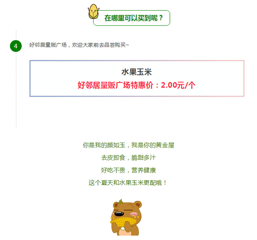 ·您當(dāng)前的位置是:首頁生態(tài)科普新品 ▏可以生吃的水果玉米,甜如初戀搶鮮吃~ 2017-07-08 好鄰居量販廣場…
